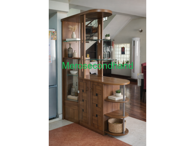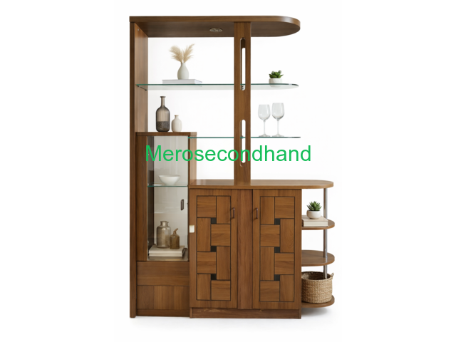 [आधुनिक काठको डिस्प्ले क्याबिनेट, ग्लास शेल्फ र भित्र स्टोरेज सहित। रुम डिभाइडर वा किचन डिस्प्ले दुवैका लागि प्रयोग गर्न मिल्छ।]